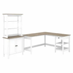 * Bundle includes: 60W L Shaped Computer Desk with Storage, Accent Storage Cabinet with Doors, Tall Hutch Organizer
