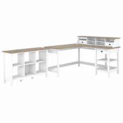 Bush Furniture Mayfield 60W L Shaped Desk and Cube Bookcase Package Shiplap Gray – MAY013GW2