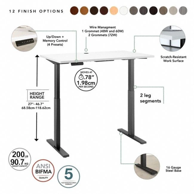 Bush Furniture Move 60 Series 60W x 30D Height Adjustable Table Standing Desk – M6S6030WHBK