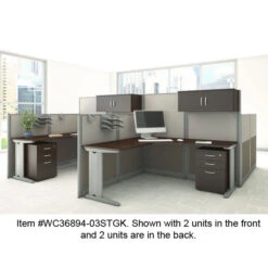 Bush Office-in-an-Hour L Shaped Desk Package Mocha – WC36494-03STGK. Each unit assembles in 60 minutes or less.