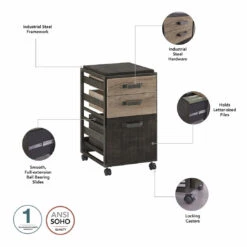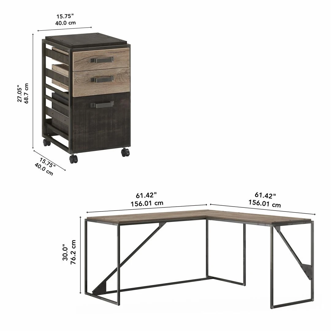 Bush Furniture Refinery 62W L Shaped Industrial Desk with 3 Drawer Mobile File Cabinet in Rustic Gray – RFY018RG
