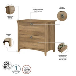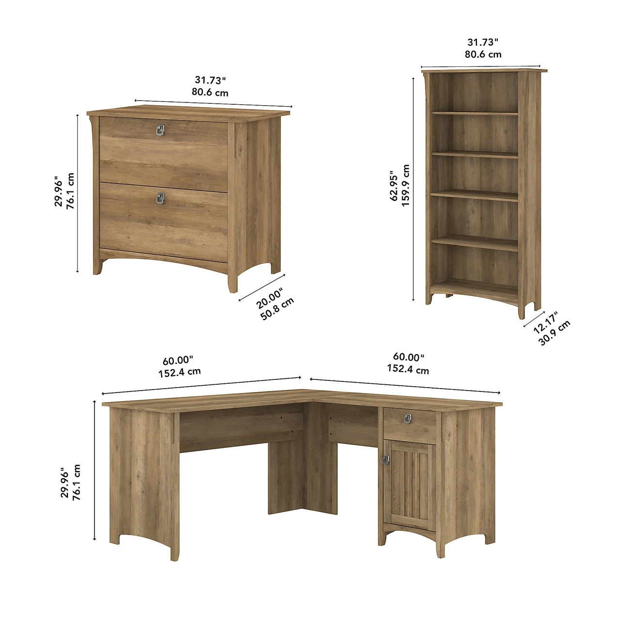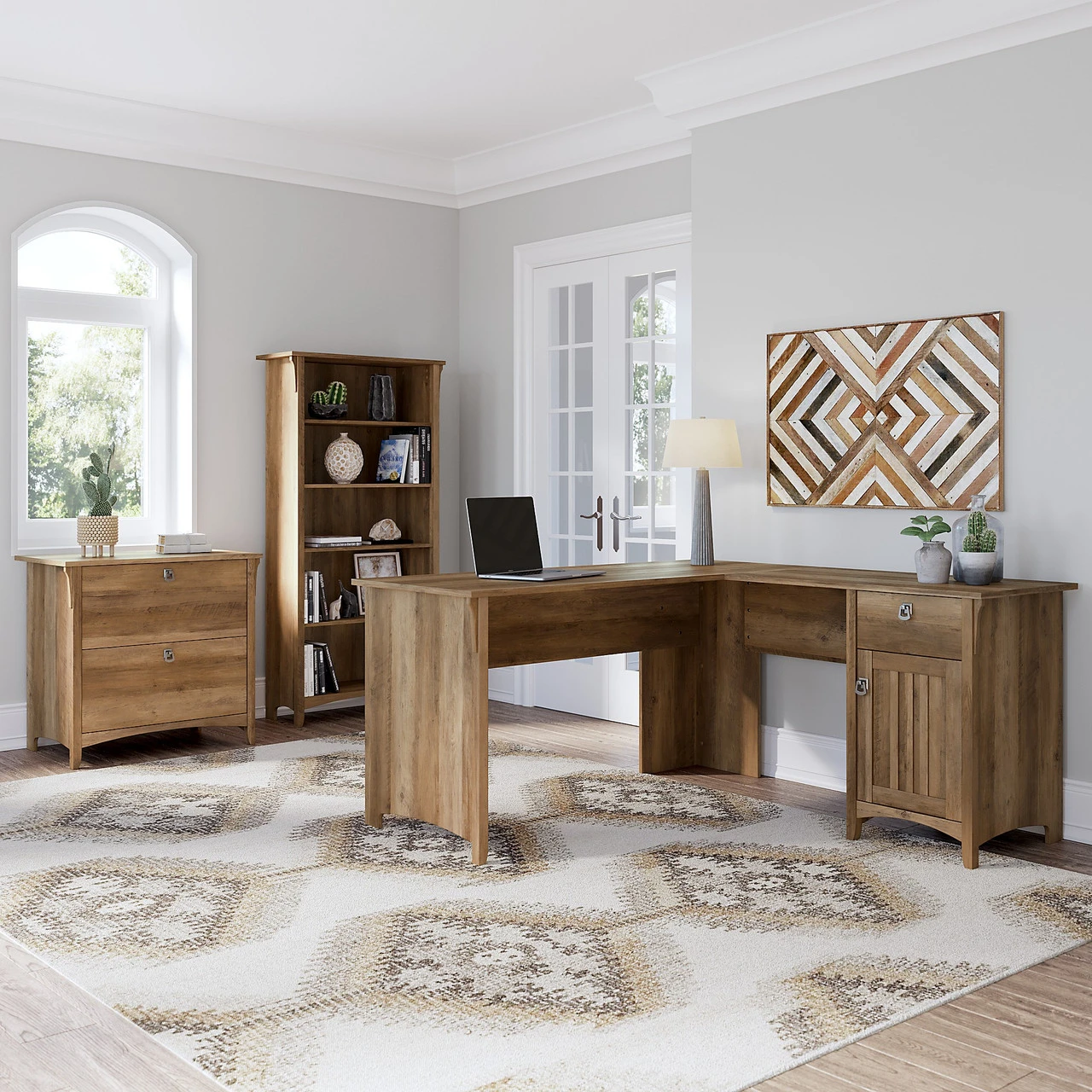 Bush Furniture Salinas 60W L Shaped Desk with Lateral File Cabinet and 5 Shelf Bookcase Reclaimed Pine – SAL003RCP