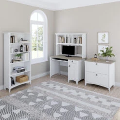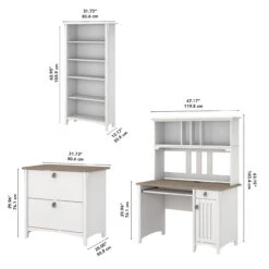 Bundle includes: Small Computer Desk with Hutch, 2 Drawer Lateral File Cabinet, 5 Shelf Bookcase