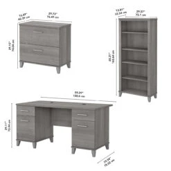 Bush Furniture Somerset 60″ Desk with Lateral File and Bookcase Platinum Gray – SET013PG