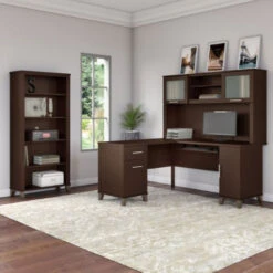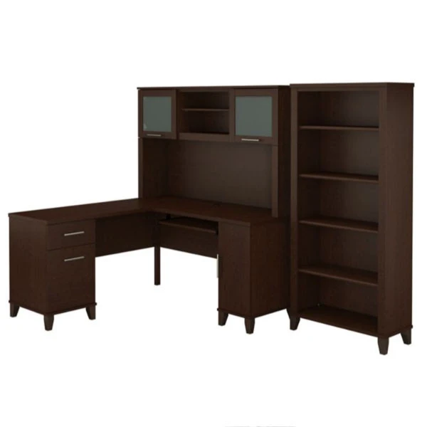 Bush Furniture Somerset 60″W L Shaped Desk with Hutch and Bookcase Mocha Cherry – SET010MR