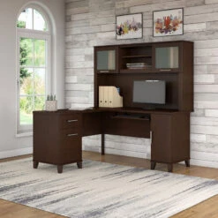 Bush Furniture Somerset 60W L Shaped Desk with Hutch in Mocha Cherry – SET002MR. Maximize the potential of your home office with the Bush Furniture Somerset 60W L Shaped Desk with Hutch.