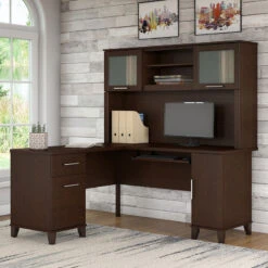 Bush Furniture Somerset 60W L Shaped Desk with Hutch in Mocha Cherry – SET002MR. Maximize the potential of your home office with the Bush Furniture Somerset 60W L Shaped Desk with Hutch.