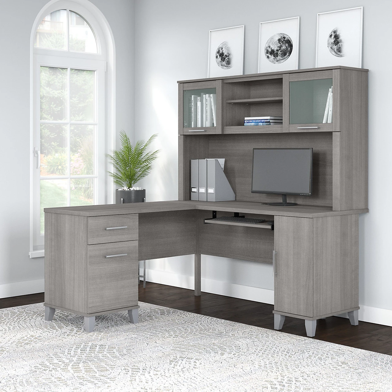 Bush Furniture Somerset 60W L Shaped Desk with Hutch Platinum Gray –Â SET002PG