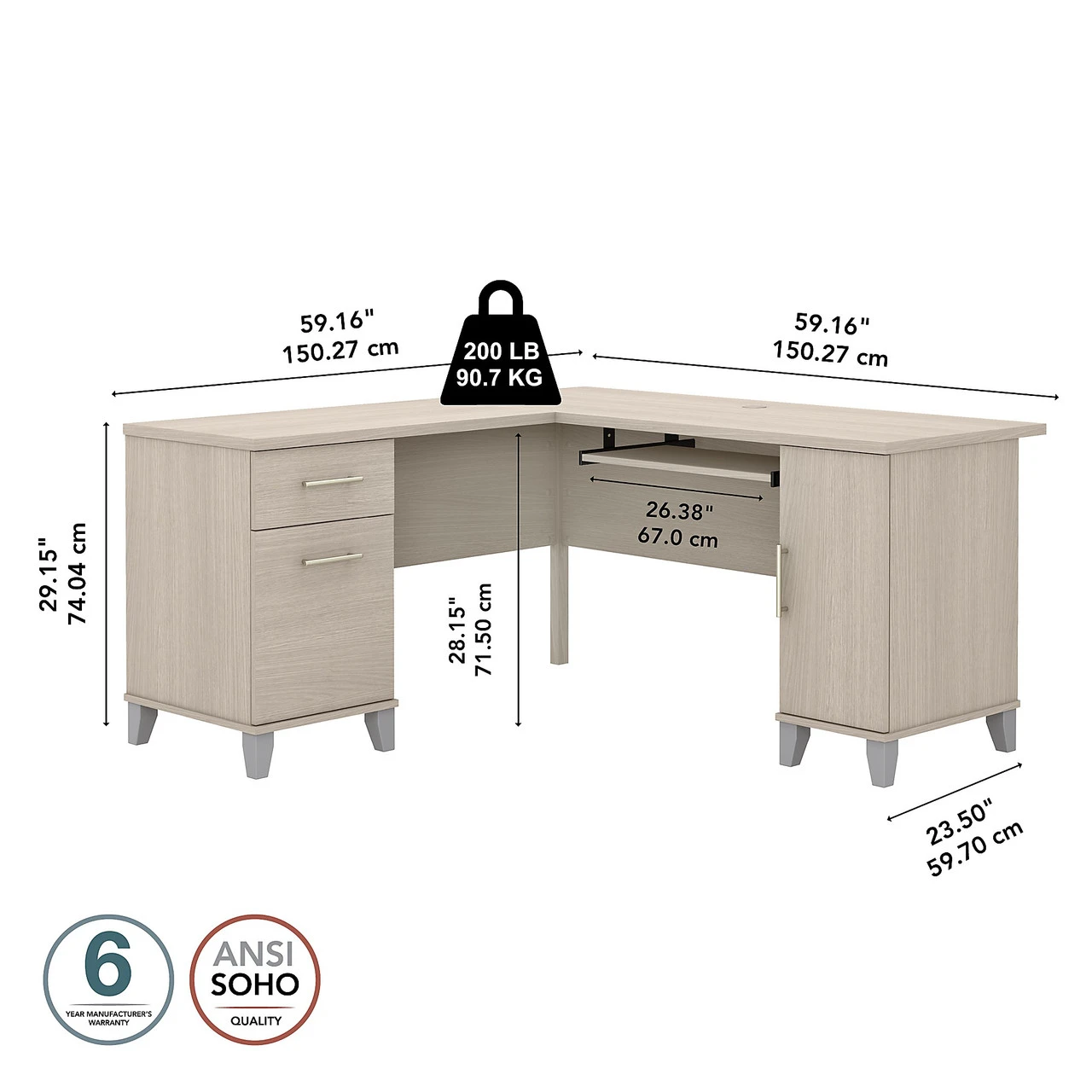 Bush Furniture Somerset 60W L Shaped Desk with Storage in Sand Oak – WC81130K