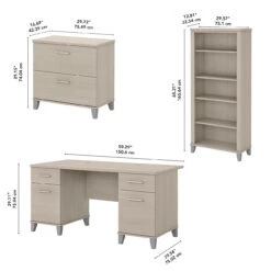 Bush Furniture Somerset 60W Office Desk with Lateral File Cabinet and 5 Shelf Bookcase in Sand Oak – SET013SO