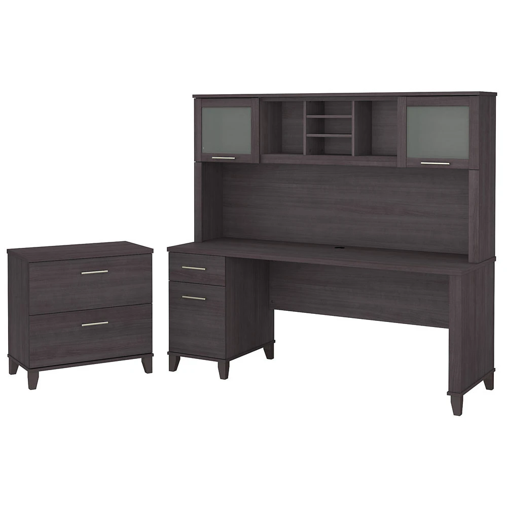 Bush Furniture Somerset 72″W Desk with Hutch and Lateral File – SET019SG