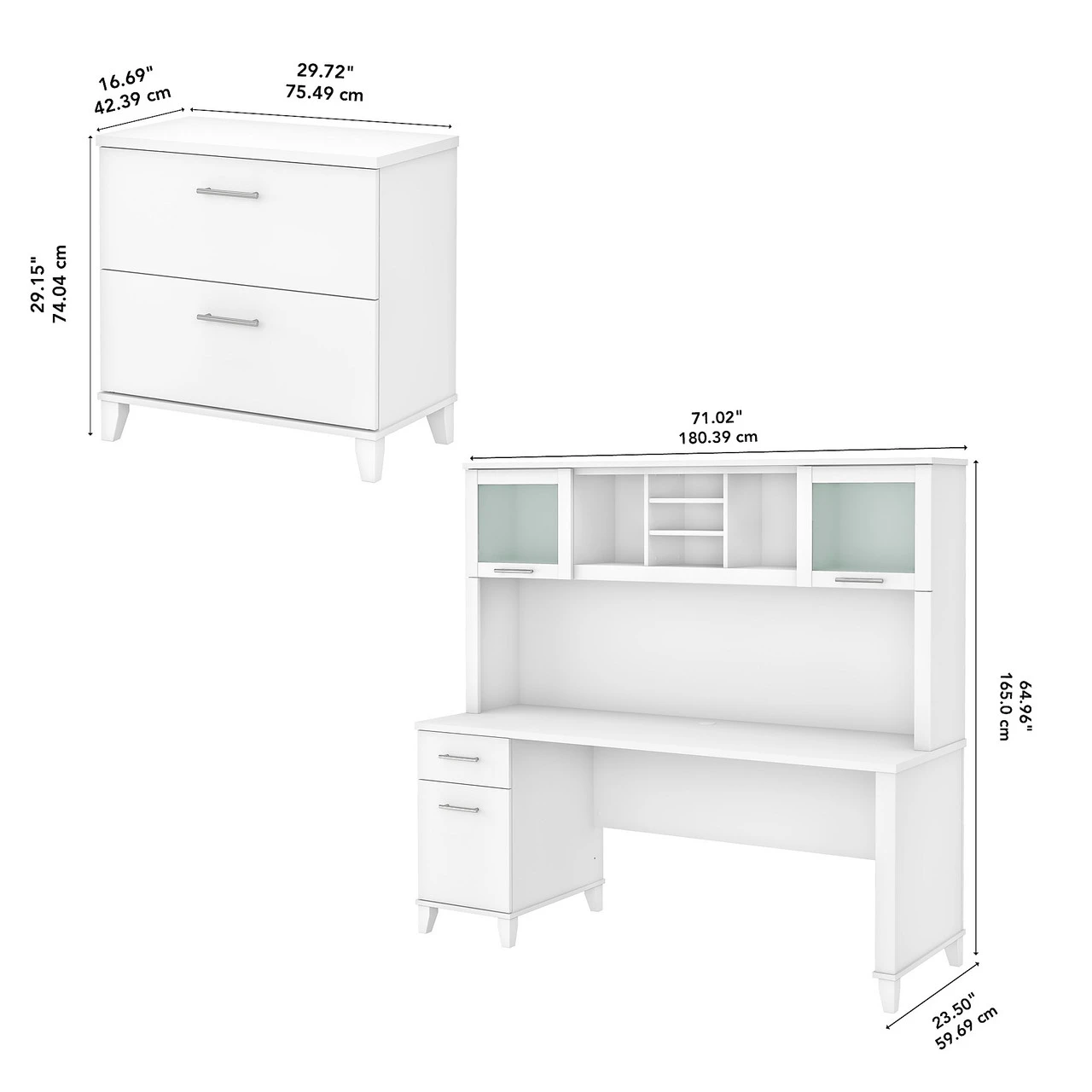 Bush Furniture Somerset 72″W Desk with Hutch and Lateral File – SET019WH