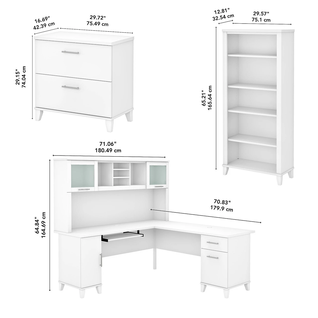 Bush Furniture Somerset 72″W L Shaped Desk with Hutch, Lateral File and Bookcase White – SET012WH