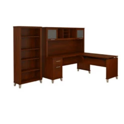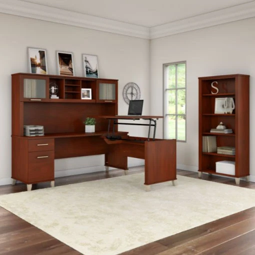 Bush Furniture Somerset 72″W Sit-to-Stand 3-Position L-Shaped Desk with Bookcase and Hutch Hansen Cherry – SET017HC