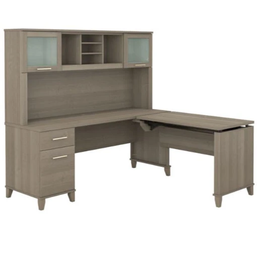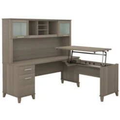 Bush Furniture Somerset 72″W Sit-to-Stand 3-Position L-Shaped Desk with Hutch Ash Gray – SET015AG