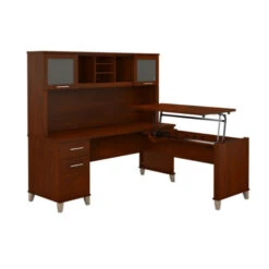 Bush Furniture Somerset 72″W Sit-to-Stand 3-Position L-Shaped Desk with Hutch Hansen Cherry – SET015HC