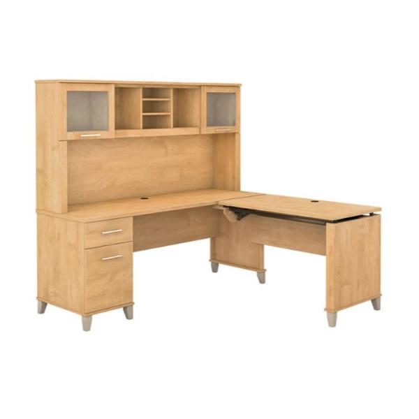 Bush Furniture Somerset 72″W Sit-to-Stand 3-Position L-Shaped Desk with Hutch Hansen Cherry – SET015MC