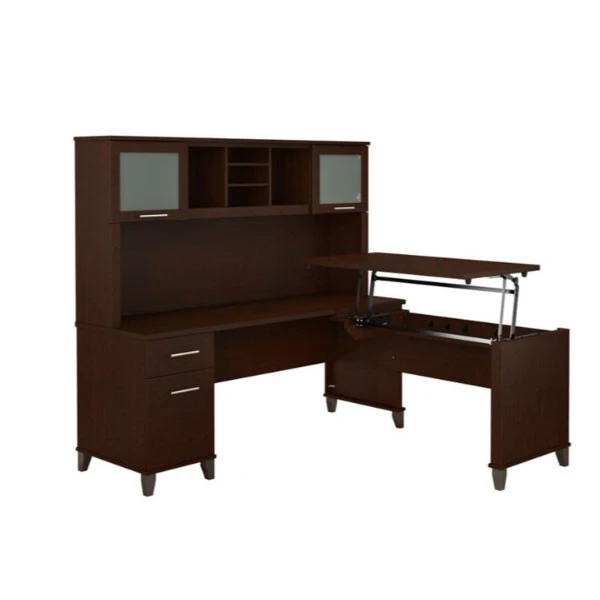 Bush Furniture Somerset 72″W Sit-to-Stand 3-Position L-Shaped Desk with Hutch Hansen Cherry – SET015HC