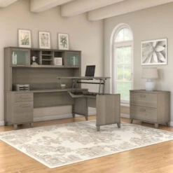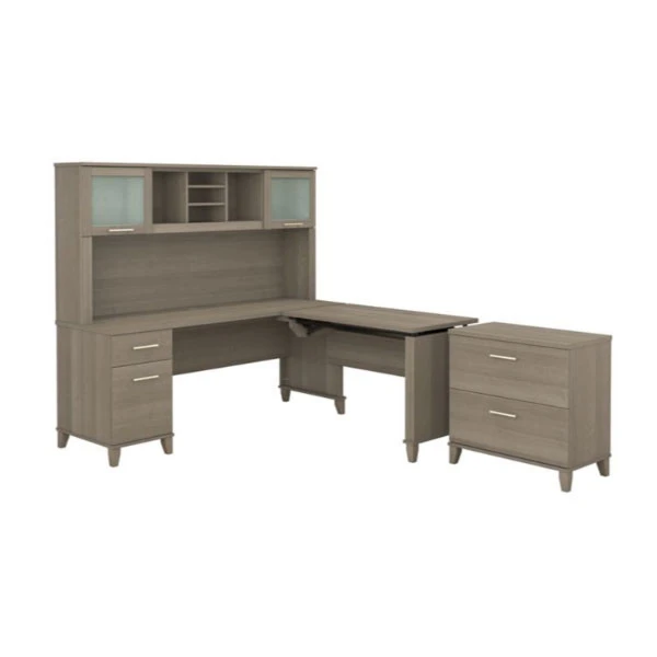 Bush Furniture Somerset 72″W Sit-to-Stand 3-Position L-Shaped Desk with Lateral File and Hutch Ash Gray – SET016AG