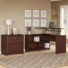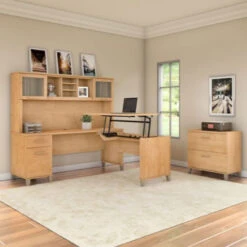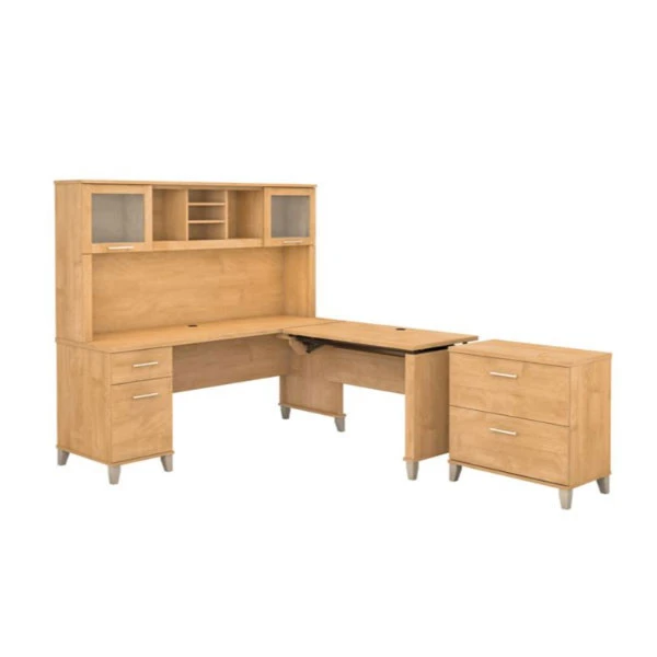 Bush Furniture Somerset 72″W Sit-to-Stand 3-Position L-Shaped Desk with Lateral File and Hutch Maple Cross – SET016MC