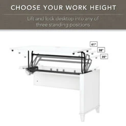 * Lift-n-Lock Desktop can be set at 3 standing height positions: 35, 38 or 41 inches and easily returns to seated height