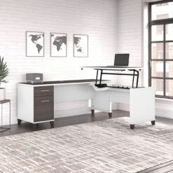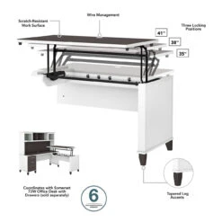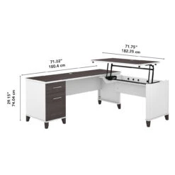 Bush Furniture Somerset 72W 3 Position Sit to Stand L Shaped Desk in White and Storm Gray – SET014SGWH