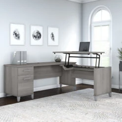 Bush Furniture Somerset 72W 3 Position Sit to Stand L Shaped Desk Platinum Gray – SET014PG