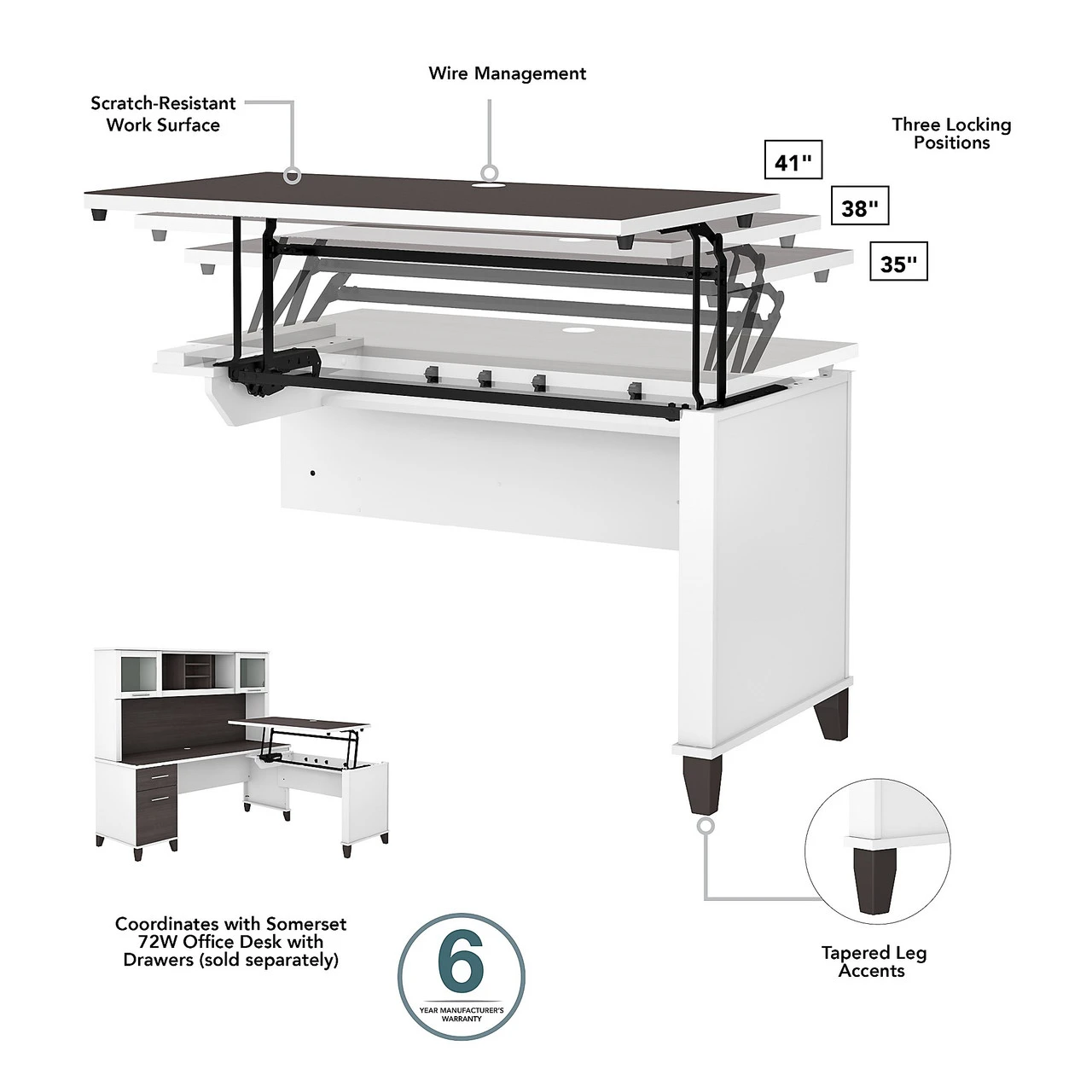 * Backed by the Bush Furniture 6 Year Manufacturer’s Warranty