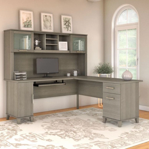 Bush Furniture Somerset 72W L Shaped Desk with Hutch in Ash Gray – SET001AG