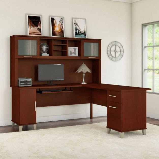 Bush Furniture Somerset 72W L Shaped Desk with Hutch in Hansen Cherry – SET001HC