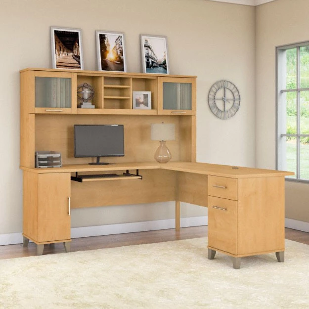 Bush Furniture Somerset 72W L Shaped Desk with Hutch in Maple Cross – SET001MC