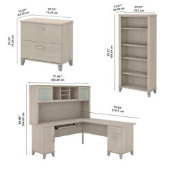 Bush Furniture Somerset 72W L Shaped Desk with Hutch, Lateral File Cabinet and Bookcase in Sand Oak – SET012SO