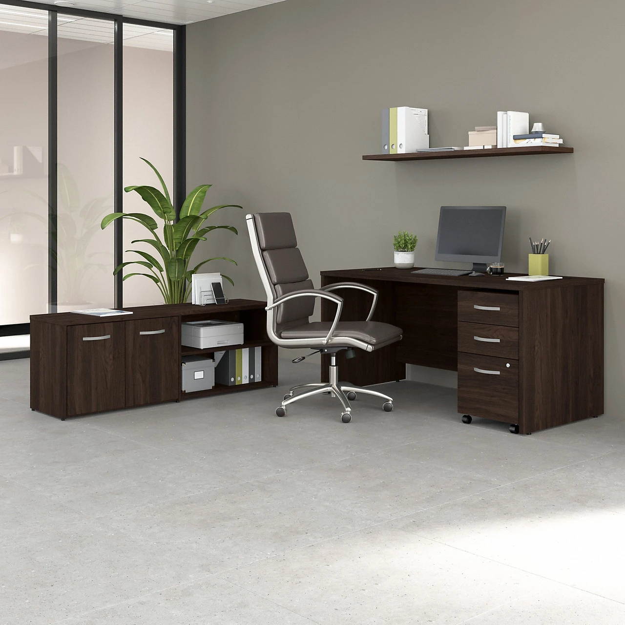 Bush Furniture Studio C 60″ Desk, 3 Drawer Mobile Ped and Low Storage Black Walnut – STC042BWSU