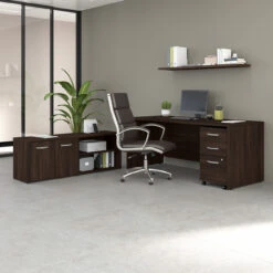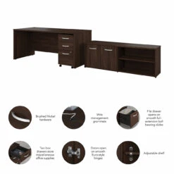 Bush Furniture Studio C 72″ Desk, 3 Drawer Mobile Ped and Low Storage Cabinet Black Walnut – STC048BWSU