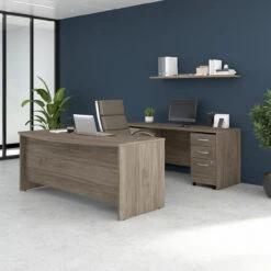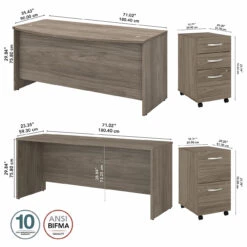 Bush Furniture Studio C 72″W x 36″D Bow Front Desk and Credenza Package Modern Hickory – STC009MHSU