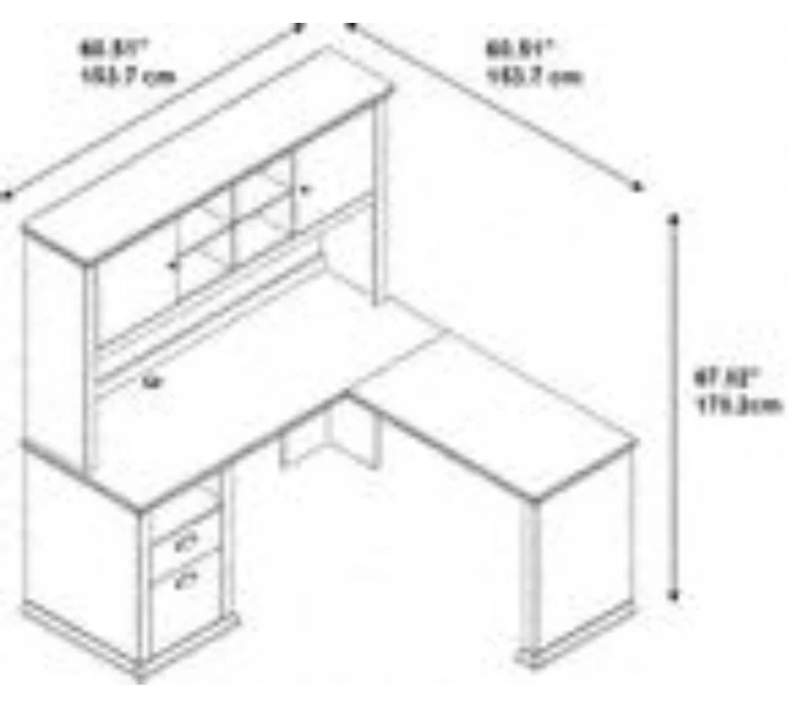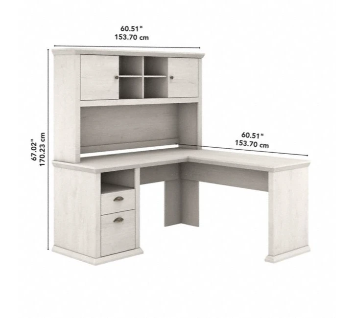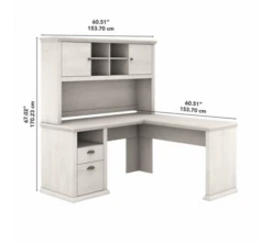 * 60W L Shaped Desk with Storage, 60W Desk Hutch