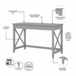Bush Key West 48W Writing Desk with 2 Drawer Lateral File Cabinet Cape Cod Gray – KWS003CG