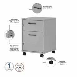 Bush Key West 48W Writing Desk with 2 Drawer Mobile Filing Cabinet Cape Cod Gray – KWS001CG