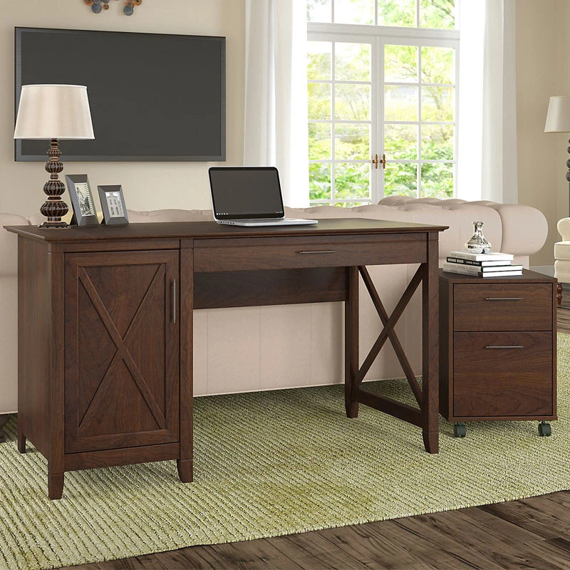Bush Key West 54W Single Pedestal Desk with 2 Drawer Mobile Pedestal – KWS006BC.
