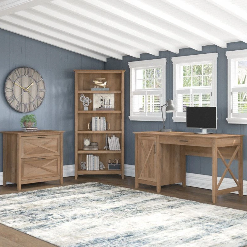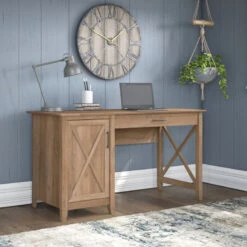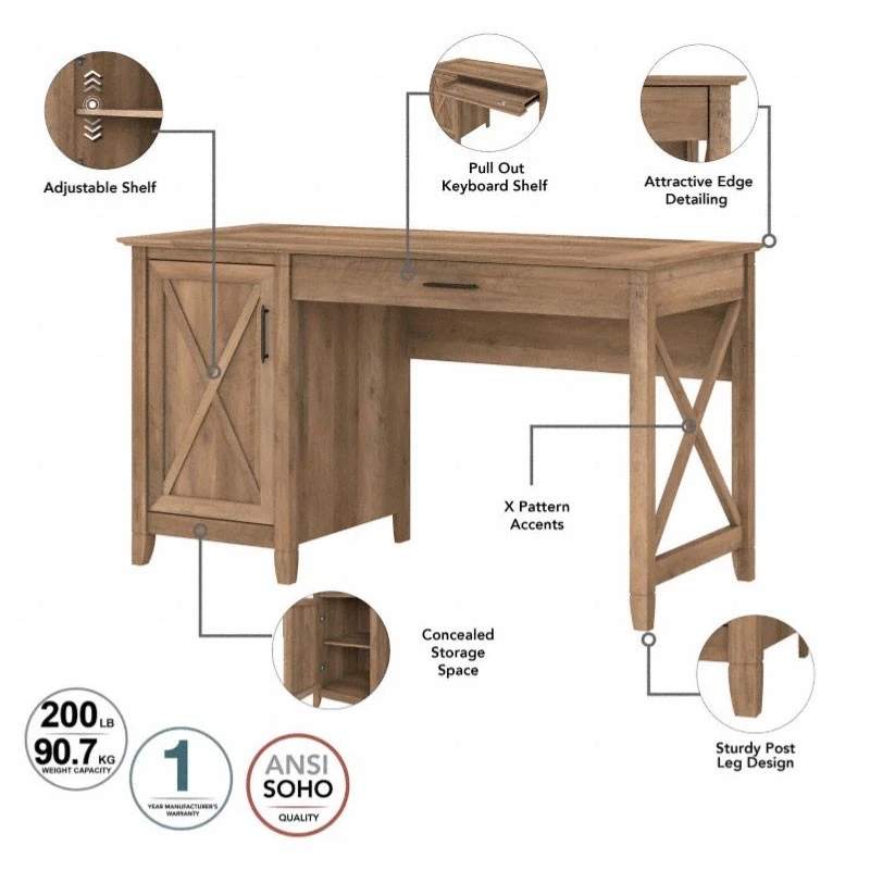 Bush Key West 54W Computer Desk with Keyboard Tray and Storage Reclaimed Pine – KWD154RCP-03.