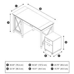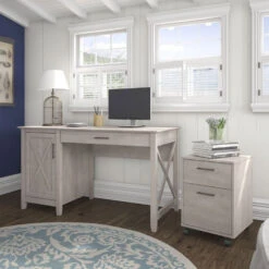 Bush Key West 54W Single Pedestal Desk with 2 Drawer Mobile Pedestal – KWS006WG.