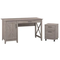 Bush Key West 54W Single Pedestal Desk with 2 Drawer Mobile Pedestal – KWS006WG.