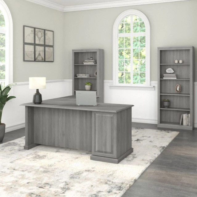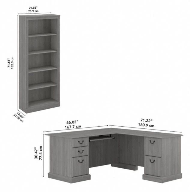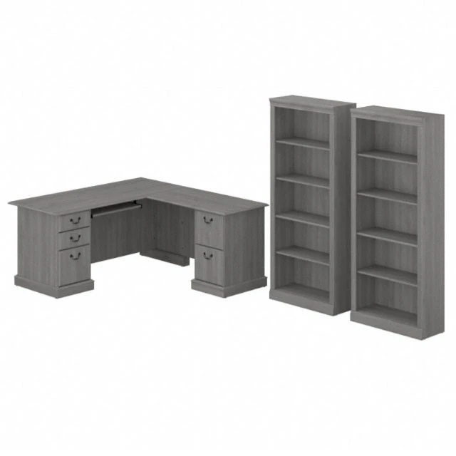 Bush Saratoga Collection L-Shaped Desk and Bookcase Set Modern Gray – SAR005MG