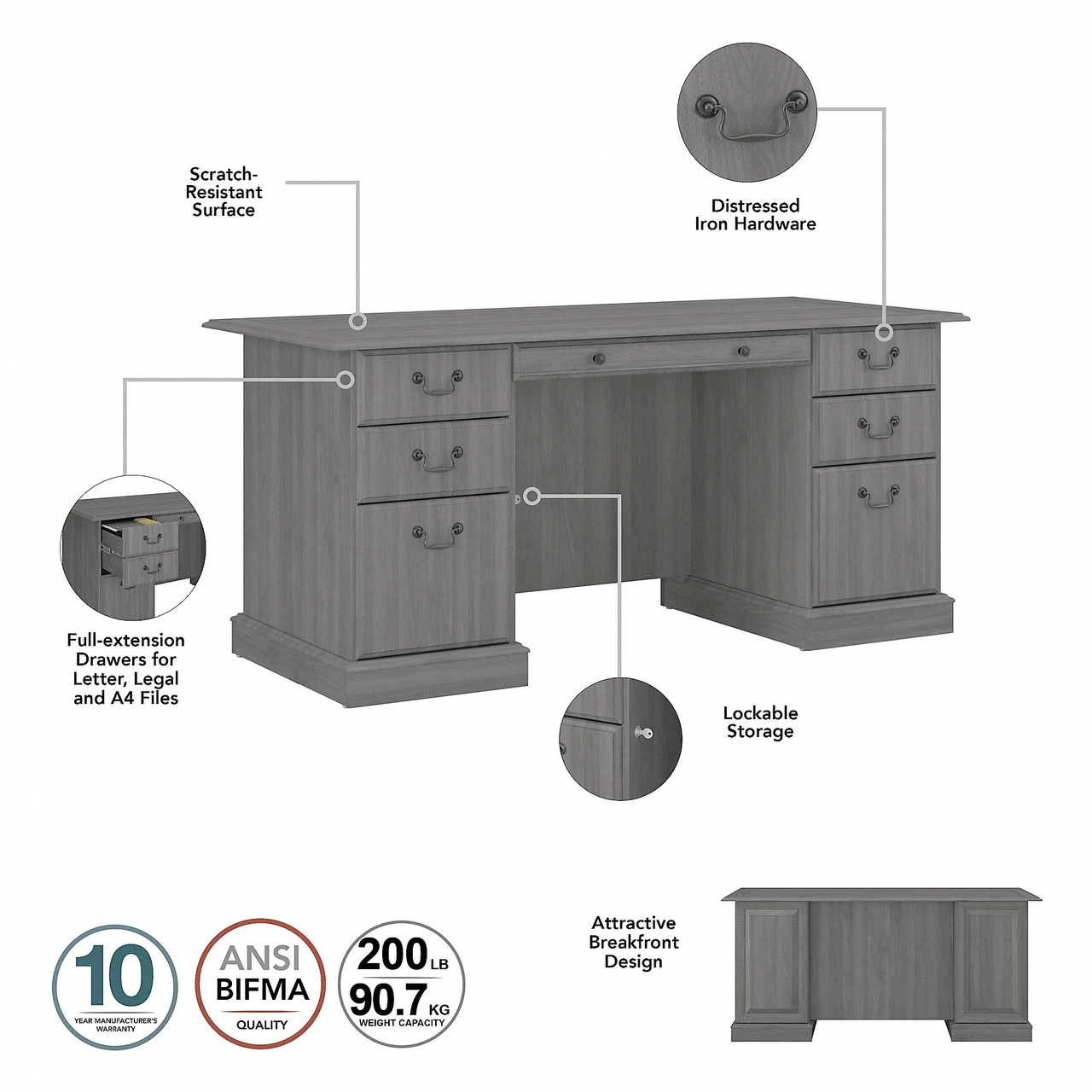 Bush Saratoga Executive Desk With Drawers Modern Gray – EX45866-03K