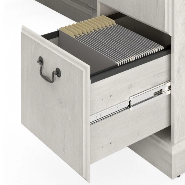 Available in Linen White Oak or Modern Gray with Distressed Iron hardware and Harvest Cherry with Gold-finished Brass hardware