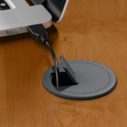 * Wire management system includes leg and desktop grommets with a channel on the modesty panel to keep cables under control