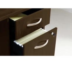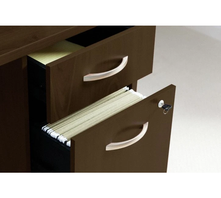 * 3 Drawer Pedestal features two box drawers for supplies and file drawer for letter, legal, and A4-sized files