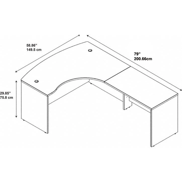 * Bundle includes 60W x 43D Right Hand Bowfront Desk Shell and 42W x 24D Return
