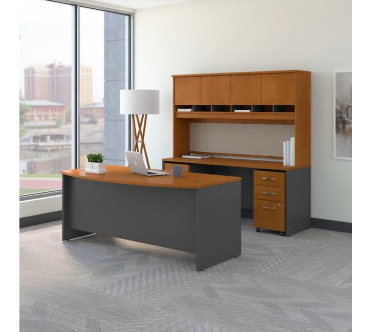 Bush Series C 72W Bow Front Desk with Credenza, Hutch and Storage – SRC082NCSU