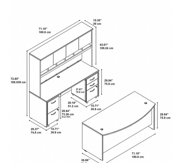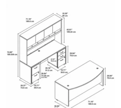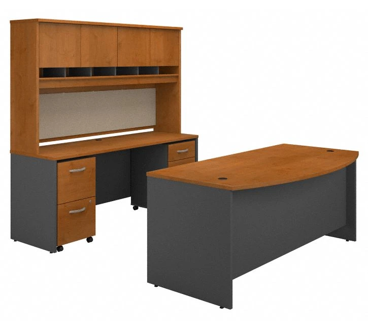 * Bundle includes: 72W x 36D Bow Front Desk, 72W x 24D Desk Credenza, 72W 4 Door Hutch, 2 Drawer Mobile File Cabinet, 3 Drawer Mobile File Cabinet